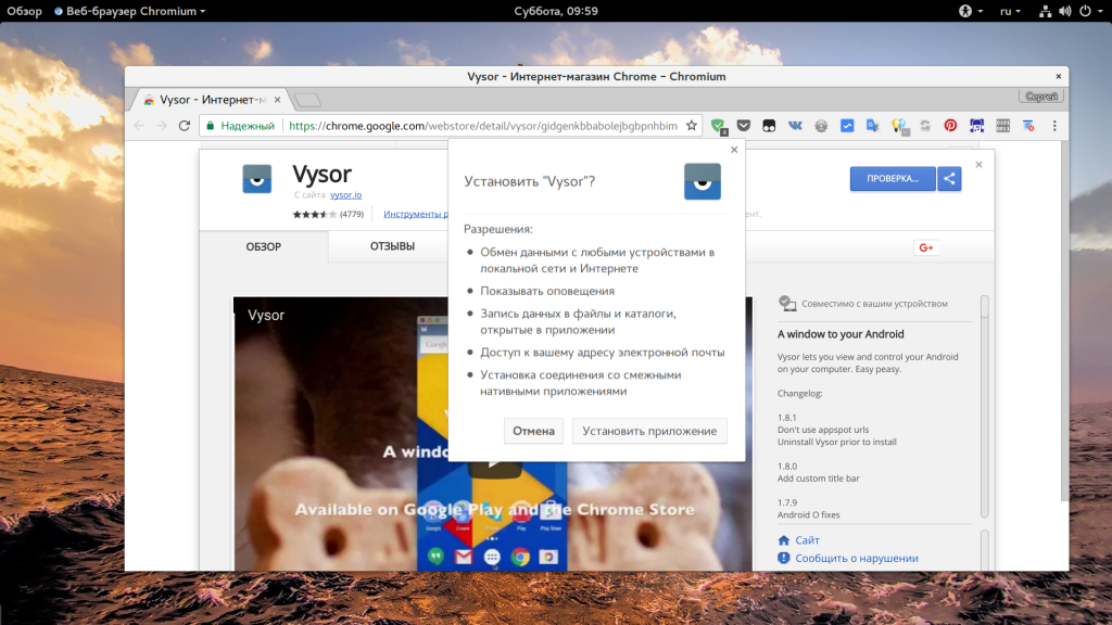 Далее нужно установить расширение Google Chrome Vysor из официального магазина: