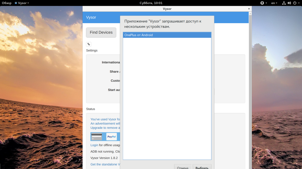 Выберите ваше устройство из списка. Затем возьмите устройство и разрешите отладку нажатием кнопки «Ok»:
