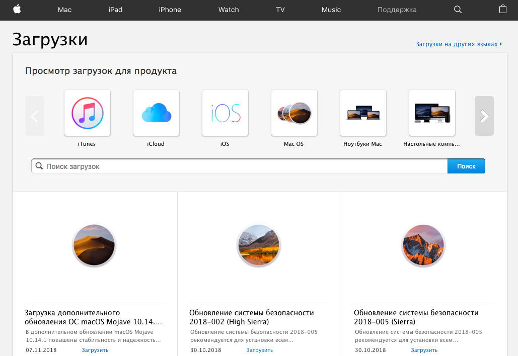 Еще одно возможное решение проблемы — скачать нужный апдейт с сайта службы технической поддержки Apple. Этот способ поможет тем, у кого не открывается или зависает магазин App Store или нужного обновления нет в списке доступных.