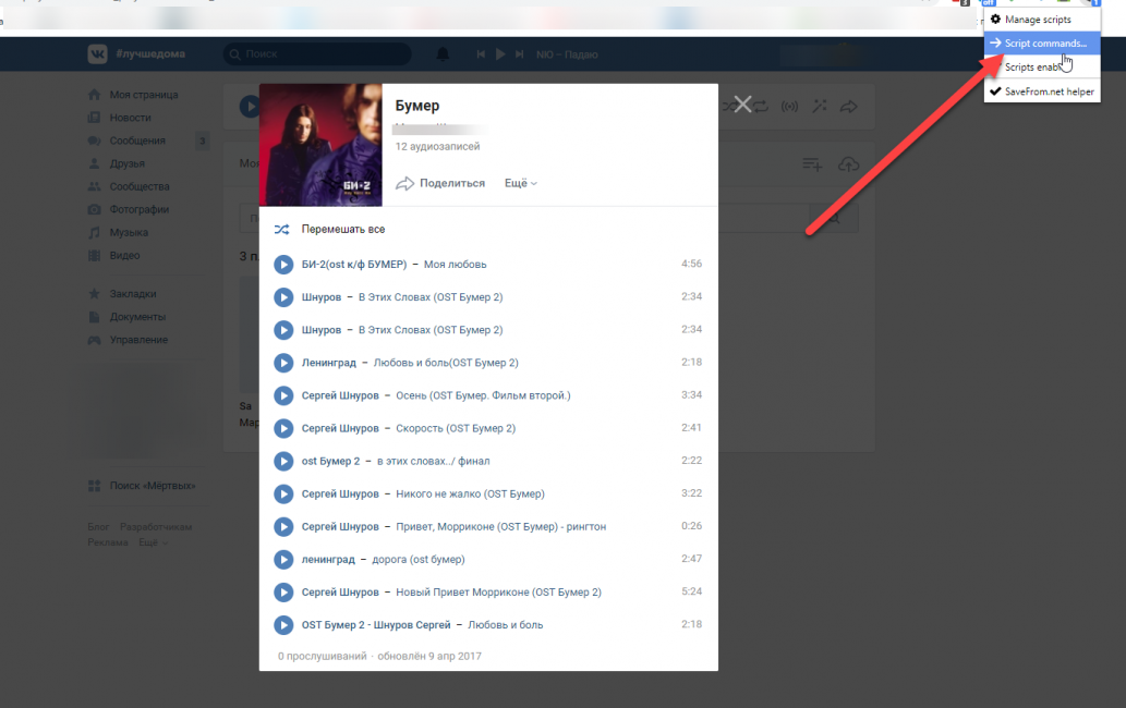 Перед вами появится список скриптов, где вам нужно выбрать пункт Скачать плейлист