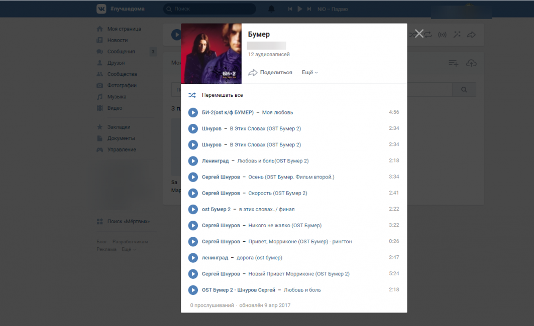 - В течение нескольких секунд сайт перегружается и после этого можно просмотреть все сохранённые аудиозаписи;