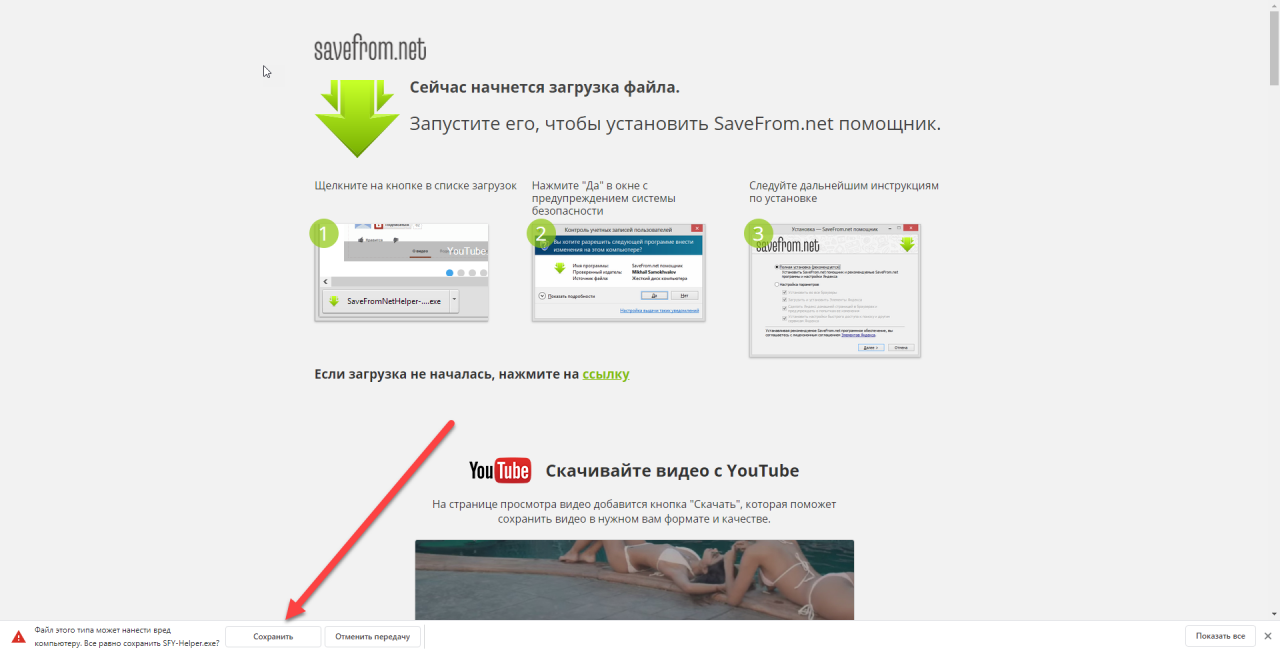 Внизу вам нужно нажать кнопку Сохранить, чтобы файл был скачан с данного ресурса