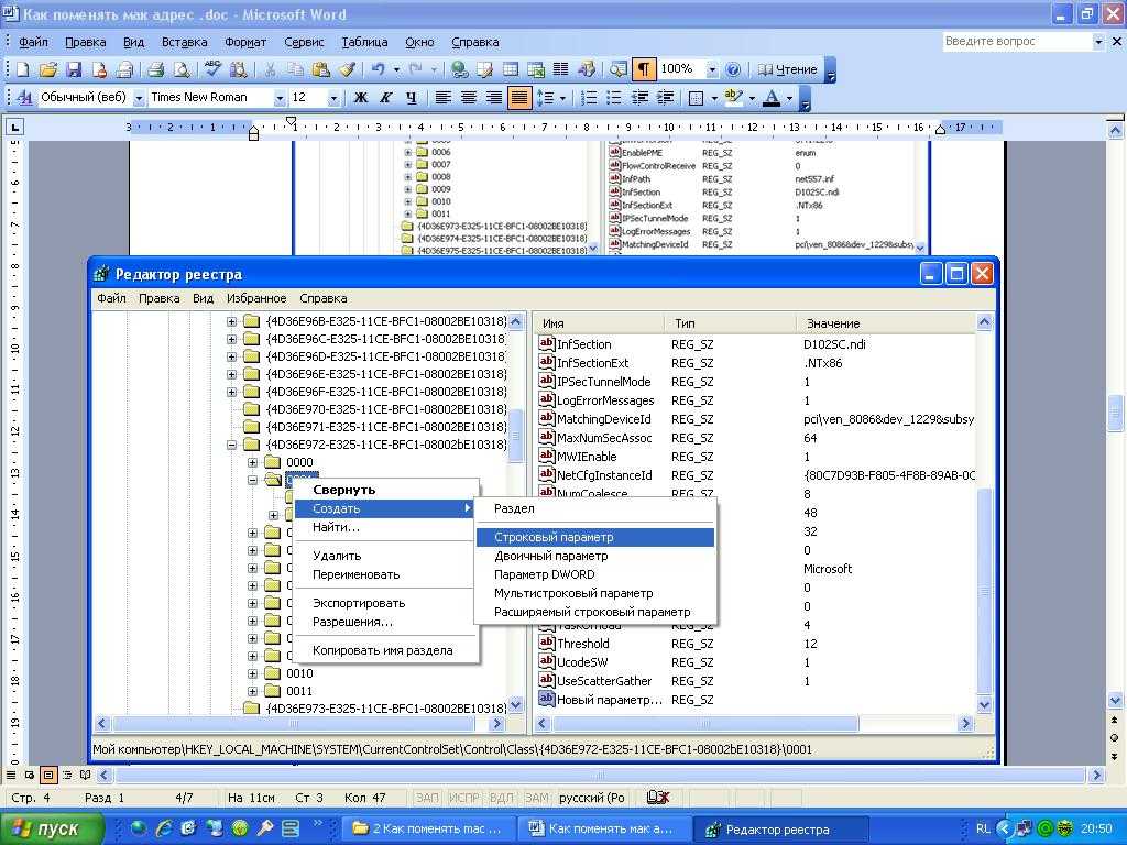 Значение, указанное в нём, подменяет собой аппаратный адрес устройства. Иногда параметр отсутствует, но его можно создать. На запрос реестра о типе указать «строковый». Указывая его значение, изменяем МАС-адрес компьютера.