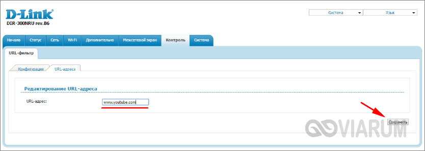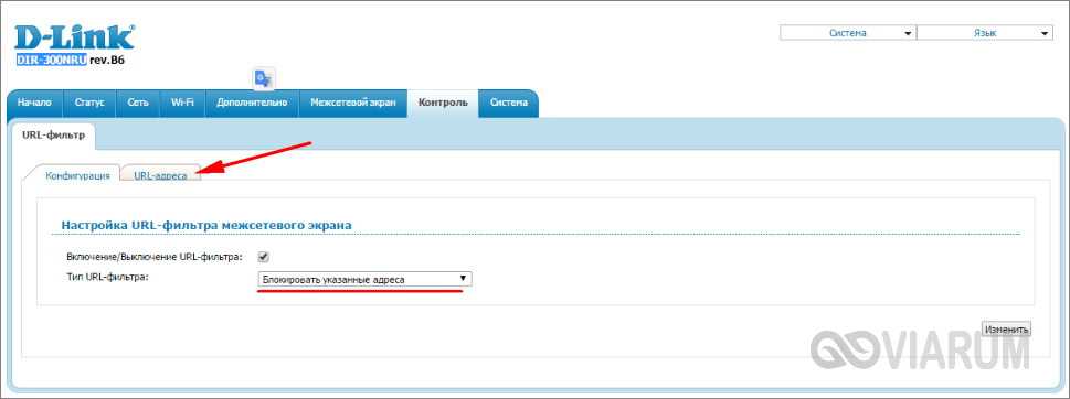 Далее необходимо будет указать режим блокировки, если такой выбор доступен. К примеру, в DIR-300NRU администратор может заблокировать только определенные URL-адреса или все URL-адреса, кроме указанных, выбрав режим на вкладке «Конфигурация».
