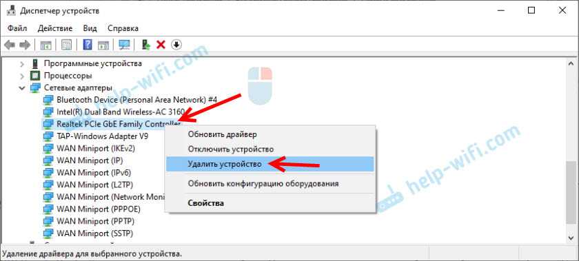 Удалить Realtek PCIe GBE Family Controller можно в диспетчере устройств. Нужно нажать на него правой кнопкой мыши и выбрать «Удалить устройство».