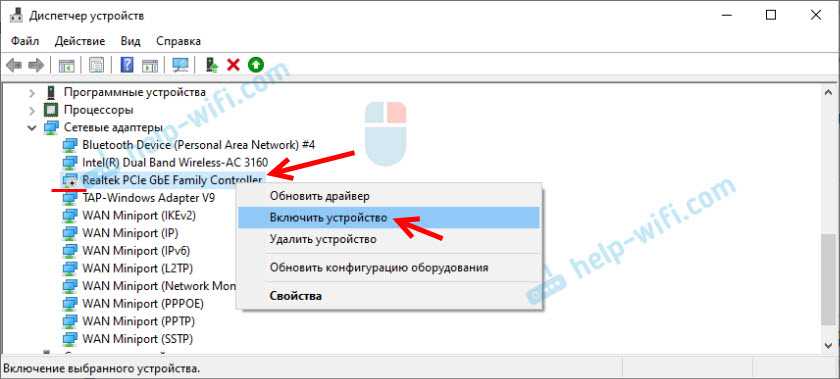 Realtek PCIe GBE Family Controller будет включен и начнет работать.