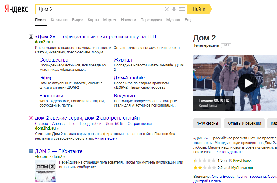 Есть темы в которых вообще нет рекламы. Например если мы наберем Дом-2, то здесь Вы не увидите никакой рекламы вообще. Потому что нет смысла рекламироваться по данному запросу. Он не тематический, и он ни о чём не говорит, и полностью пустой в плане заработка. Но при этом его запрашивают огромное количество раз и ресурс имеет огромное количество посетителей с ПС (далее поисковая система).