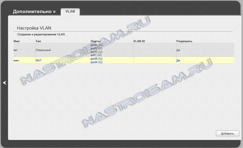 2 вариант. IPTV-трафик приходит в тегированном виде, т.е. используются VLAN — например, цифровое телевидение Ростелеком в Саратовской области или в Татарстане. В этом случае нажимаем в правом нижнем углу окна веб-интерфейса кнопку Добавить. Откроется окно создания VLAN: