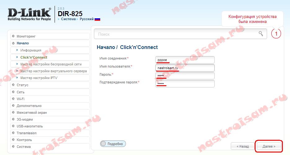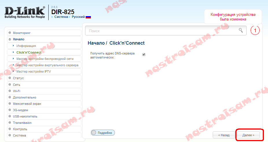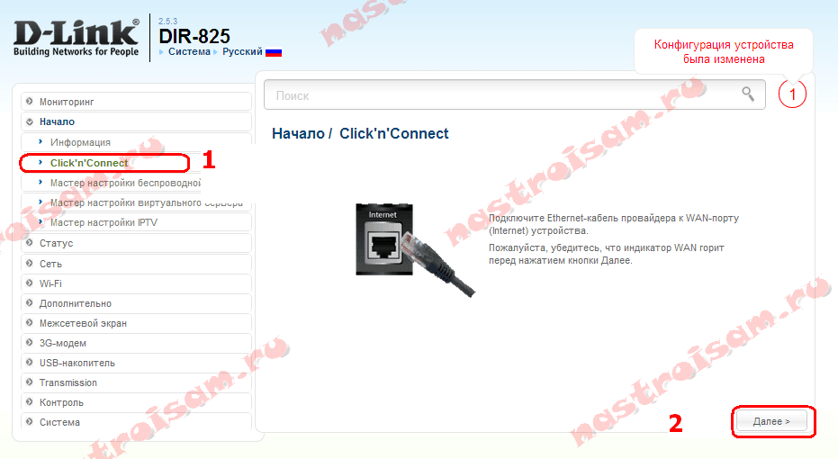 На новой прошивке роутера базовую конфигурацию в большинстве случаев целесообразно делать через универсальный мастер — «Click’n’Connect»: