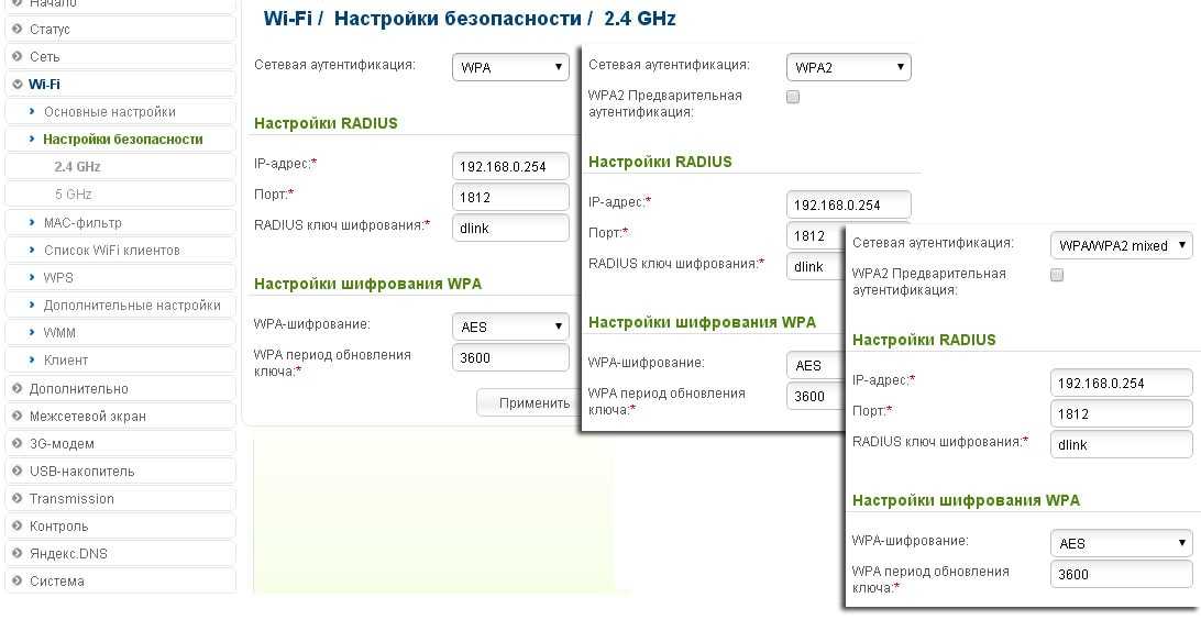 «WPA», «WPA2» или «WPA/WPA2 mixed»