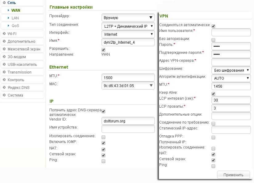 Настройка L2TP подключения