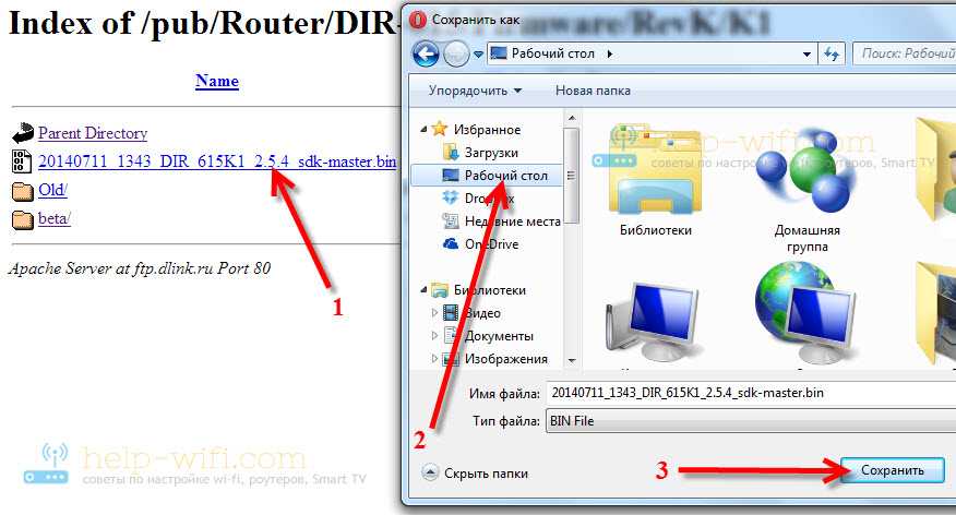 Дальше, видим папки обычно там есть папка Old (в ней находятся старые версии прошивок), и папка beta (в ней может быть прошивка, которая находится на стадии разработки). Нам эти папки не нужны, а нужен сам файл, с расширением .bin и примерно таким названием 20140711_1343_DIR_615K1_2.5.4_sdk-master.bin. Этот файл находиться возле папок. Если присмотреться в название файла, то можно увидеть для какого он роутер, для какой ревизии, какая версия и дату.