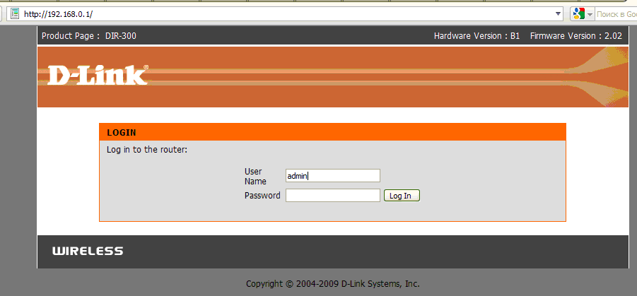 Данный метод входа подходит также для моделей d link dir 615, d link dir 320, d link dir 620. Вводим в адресную строку браузера 192.168.0.1 (зайти в настройки роутера d link dsl 2640u можно по адресу 192.168.1.1). В появившееся окно вводим Логин и пароль. Если вид окна соответствует картинке ниже, вводим только логин-admin, пароль оставляем пустым. :