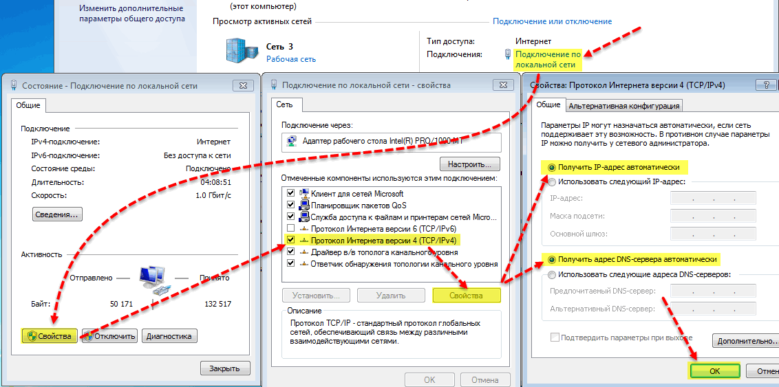 А для входа в интерфейс настроек нужно, чтобы IP-адрес сетевого адаптера лежал в той же подсети, что и адрес роутера. У большинства маршрутизаторов по умолчанию включен DHCP сервер. Это значит, что в настройках сетевого адаптера компьютера вам достаточно указать получение IP автоматически.