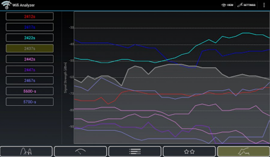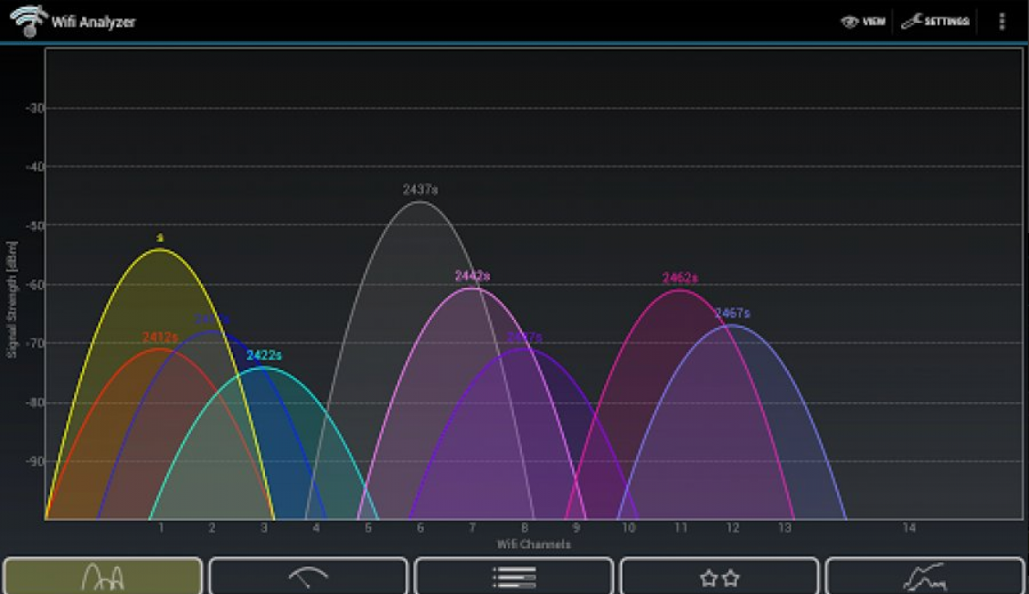 Благодаря наглядным визуальным графикам этот режим удобно использовать для выявления пересекающихся Wi-Fi сетей: