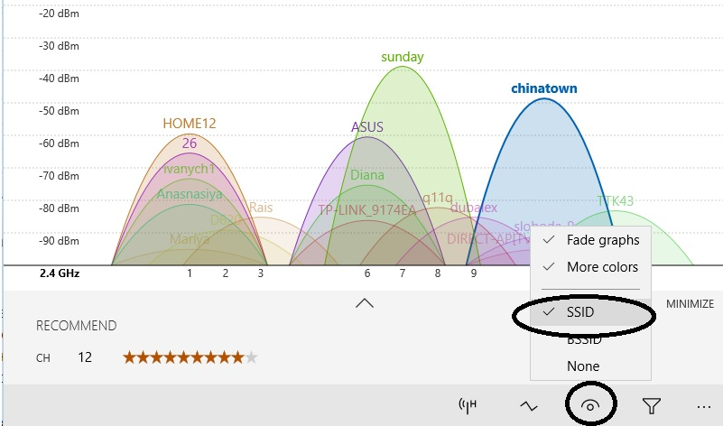 Подключение функции SSID при совершении анализа предлагаемых каналов