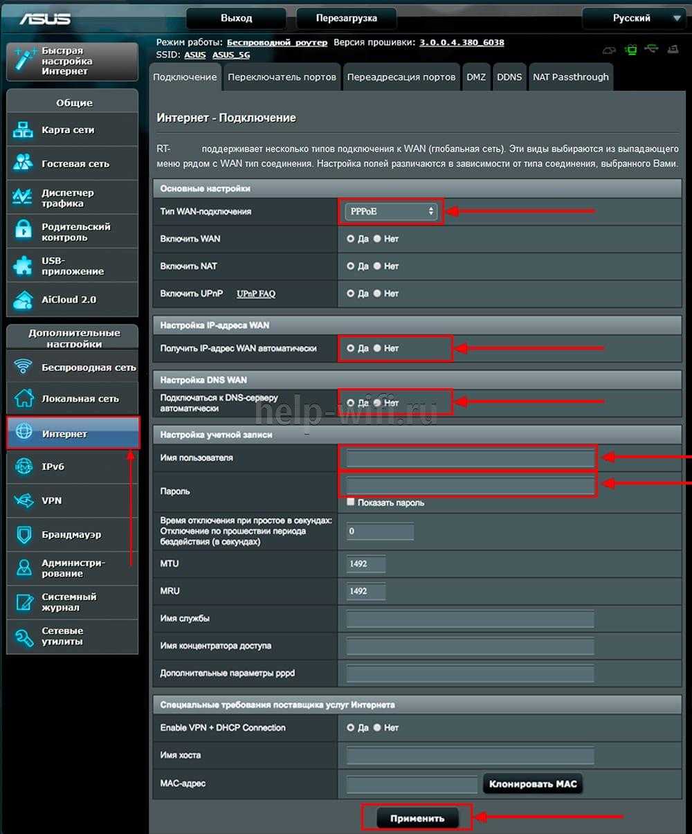 Использование мастера быстрой настройки Интернет на маршрутизаторе Asus