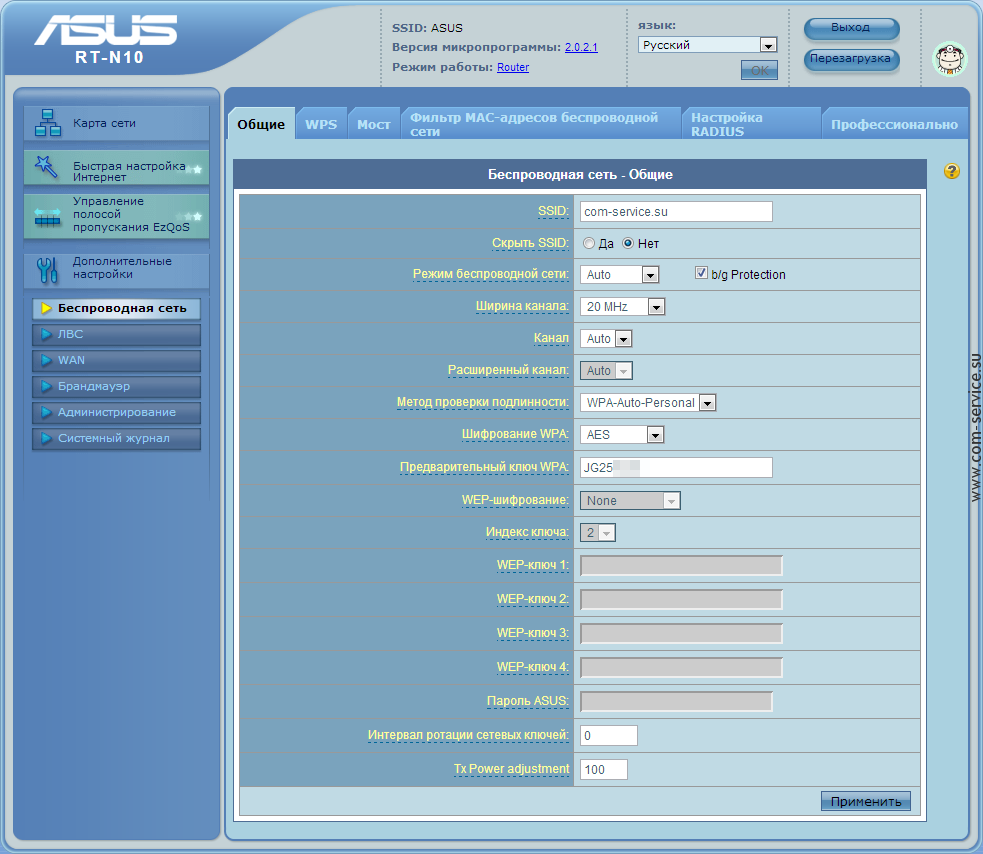 Настройка Wi-Fi (беспроводной сети) ASUS RT-N10