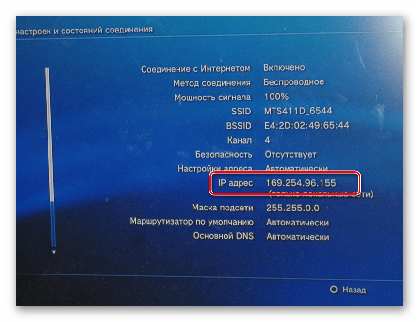 - Проверьте, какие параметры были присвоены PS3. Эти данные необходимы для того, чтобы выполнить удалённое подключение через FTP-клиент. В разделе «Список настроек и состояний соединения» перепишите IP-адрес, маску, шлюз и DNS-сервер. Не забывайте о том, что IP-адрес может время от времени изменяться, особенно в том случае, когда роутером пользуется несколько девайсов.