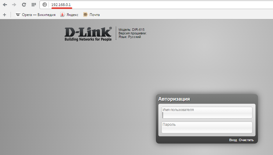Например, роутеры TP-Link и D-Link используют IP-адрес 192.168.0.1. После ввода этого значения в адресной строке браузера появляется окно авторизации — в нем нужно прописать логин и пароль. Для некоторых моделей маршрутизаторов D-Link Dir нужно указывать только логин, строку для пароля можно оставить пустой.