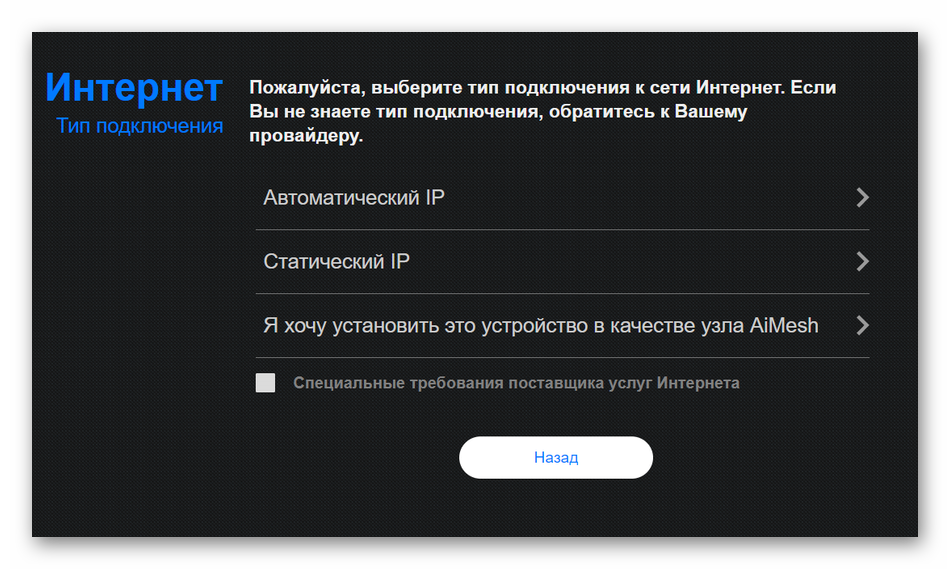 На первой странице определяемся с приоритетом источника подключения к интернету и следуем дальше.