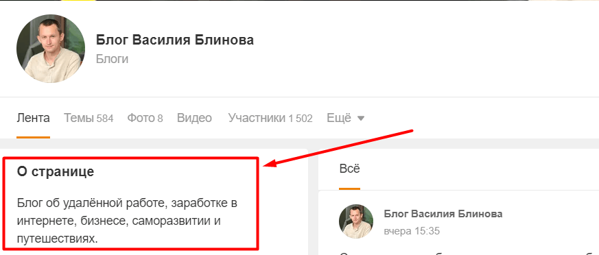 Описание. Это информация, которую будут видеть посетители, когда зайдут к вам “в гости”. В идеале описание должно дать человеку понимание, о чем ваша группа, и заинтересовать его, чтобы он продолжил знакомство с публикациями и в итоге подписался. Вот так это будет выглядеть в готовом виде: