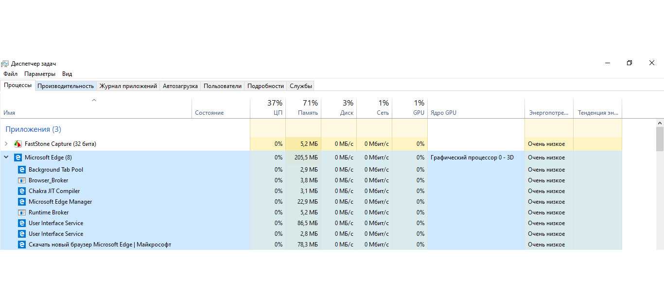 Если открыть много вкладок в Edge, он может вылететь или перезапуститься. Максимальная загрузка оперативной памяти при открытии 3 вкладок в Edge составляет 1,5 Гб. Таким образом, для нормального функционирования операционной системы и самого веб-клиента нужно порядка 4-6 Гб RAM.