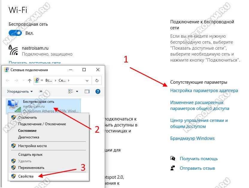 - Правой кнопкой по беспроводной сети и выбираем свойства;