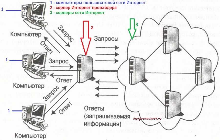 Сервером интернета принимается запрос и, если он может передать то, что вы просите, то отправляет это на сервер провайдера. Соответственно, после этого провайдер передает полученный результат на ваш компьютер.