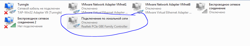 Также у вас может быть отключена сетевая карта. Заходим в настройки и включаем ее.