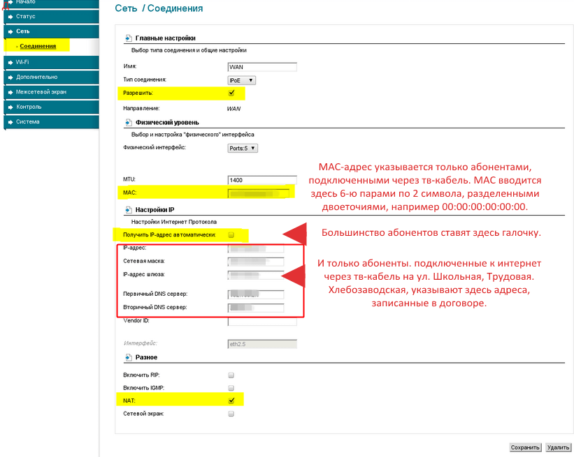 Если вы подключены к интернет через телевизионный кабель в поле MAC необходимо ввести мак-адрес сетевой карты компьютера с которого вы до установки роутера выходили в интернет.