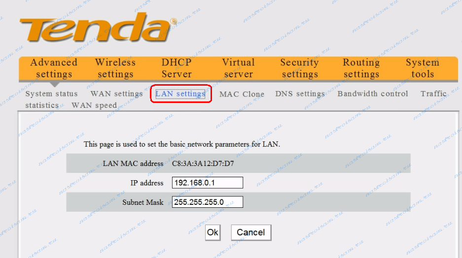 Настройка локальной сети LAN на Tenda W316R.
