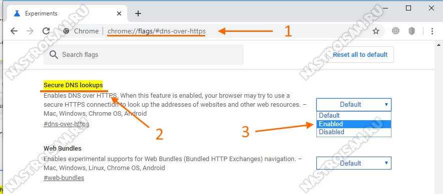 Ставим ему значение Enable и перезапускаем Оперу. После этого браузер будет использовать ДНС-сервер Cloudflare 1.1.1.1 через защифрованное соединение.