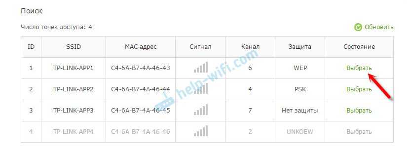 Выберите из списка сеть, к которой вы хотите подключится. Просто нажмите «Выбрать» напротив своей сети. Думаю, вы без проблем найдете свою сеть в списке доступных.