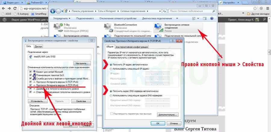 Находим наше беспроводное соединение, кликаем по нему правой кнопкой мыши и заходим в «Протокол Интернета версии 4» и в свойствах сетевого адаптера устанавливаем флажок на получение DNS автоматически.