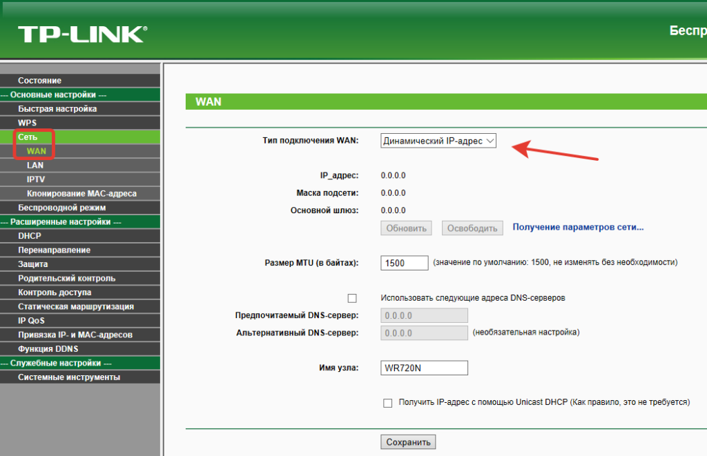 Чтобы настроить подключение вручную, в пункте меню «Основные настройки» перейдите в подпункт WAN. Здесь выберите тип вашего подключения и введите дополнительные настройки, предоставленные провайдером.