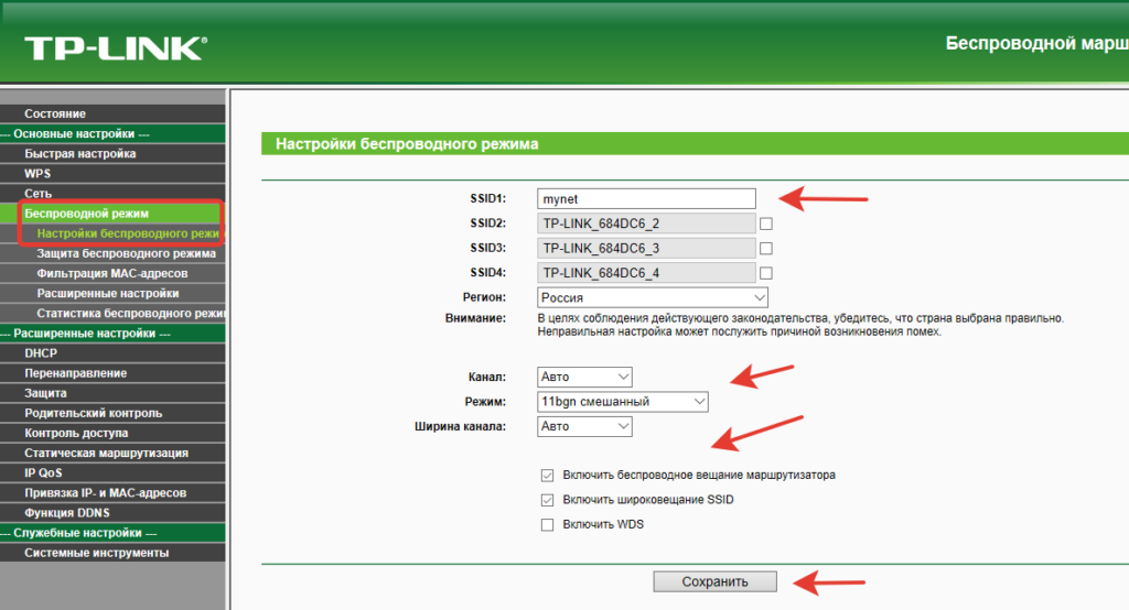 Роутеры TP-Link поддерживают четыре беспроводных сети. Их можно активировать, установив галочки напротив соответствующих пунктов (SSID 2, 3, 4) и, по желанию, вписав в поле своё название. Эти сети будут работать независимо друг от друга.