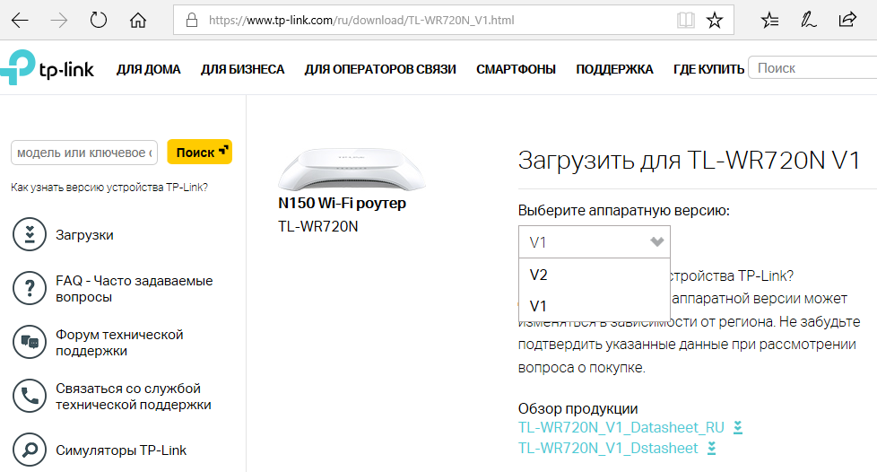 Проверьте соответствие аппаратной версии и версии ПО. Установка неправильной версии ПО может повредить ваше устройство и аннулировать гарантию. (Обычно V1.x =V1)