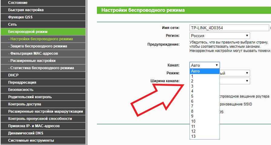 Зайдите в окно «Беспроводной режим» — «Настройки». Выберите количество каналов. Для начала рекомендуется попробовать подключить значение «Авто», если оно не работает, выставляйте значение вручную, подбирая подходящий вариант. Такая настройка WiFi поможет решить все проблемы, которые связаны с неправильной работой роутера.