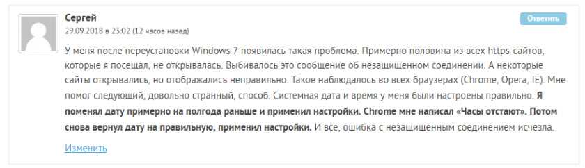 Так как время и дата были настроены правильно, то Сергей сначала изменил дату, после чего Хром начал выдавать сообщение «Часы отстают», и после установки правильной даты все заработало.