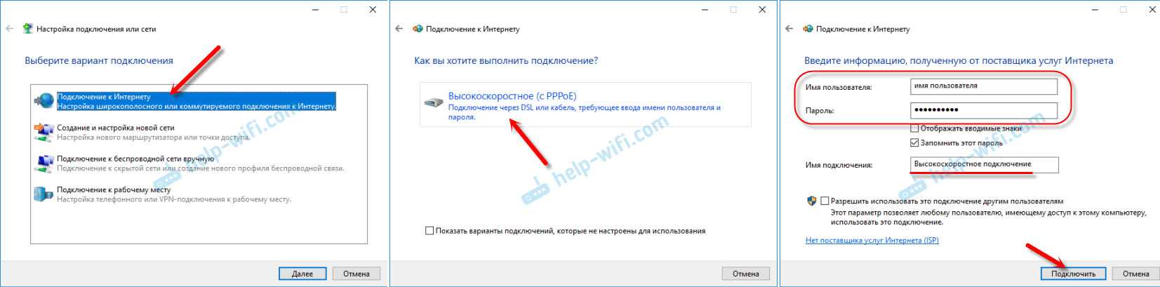 Выберите, если предложит, «Высокоскоростное подключение (PPPoE)».