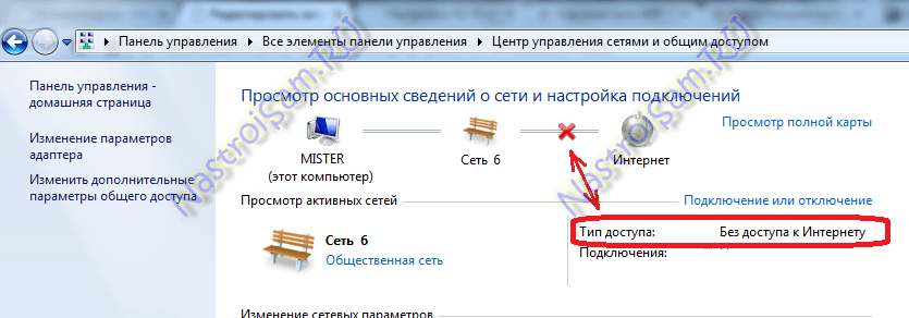 Вариант 2 — Сеть опознана, но Без доступа в Интернет.