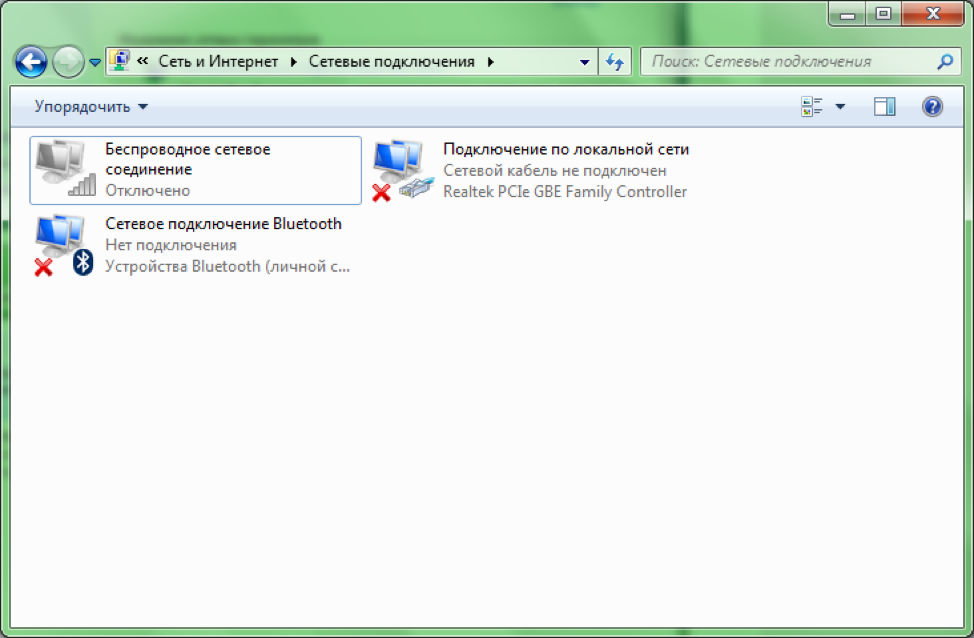 Сетевой кабель не подключен. Красный крестик и нет доступных подключений