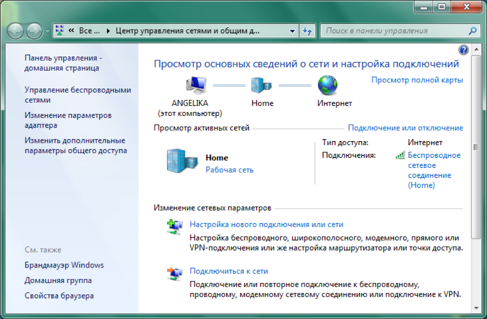 Рис: Центр управления сетями Windows
