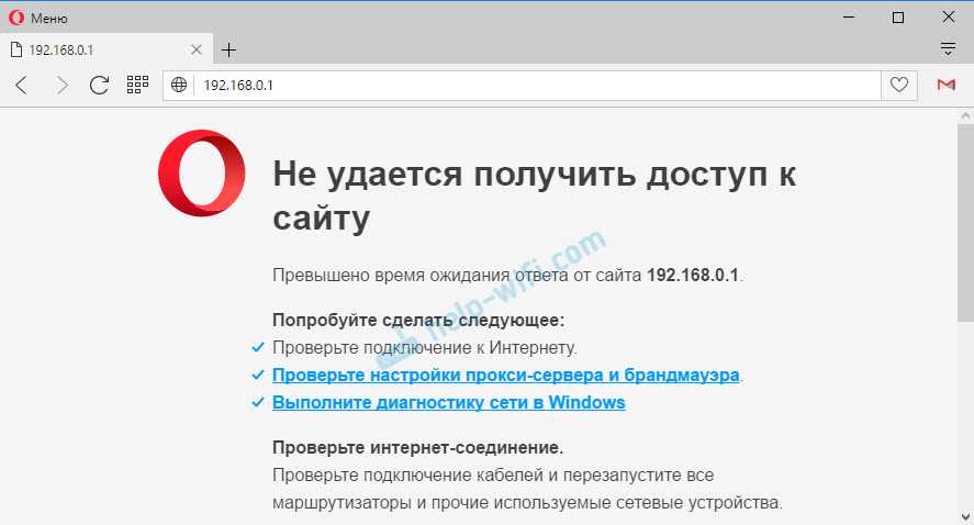 Ну и подробная статья с решениями этой проблемы: не заходит в настройки роутера на 192.168.0.1 или 192.168.1.1.