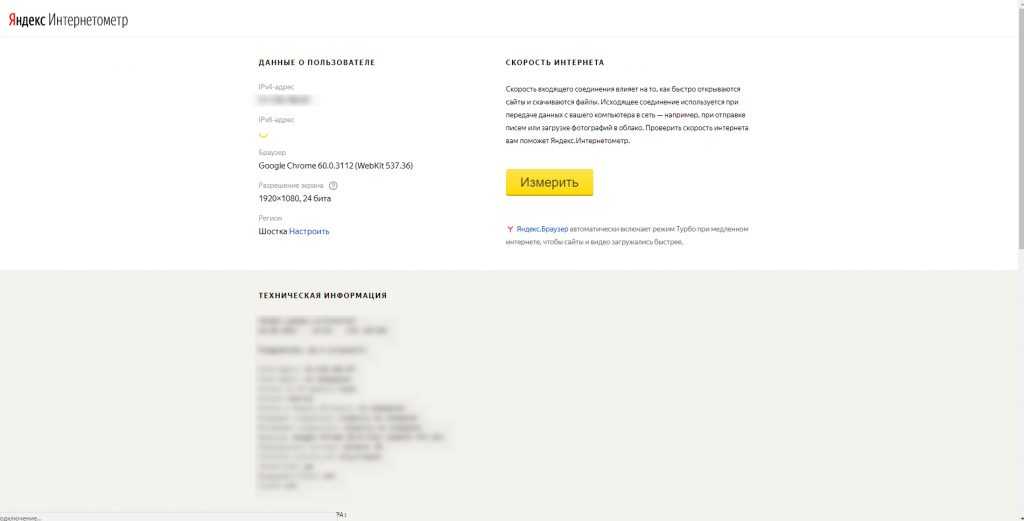 Проверка скорости интернета с помощью Яндекс Интернетометр