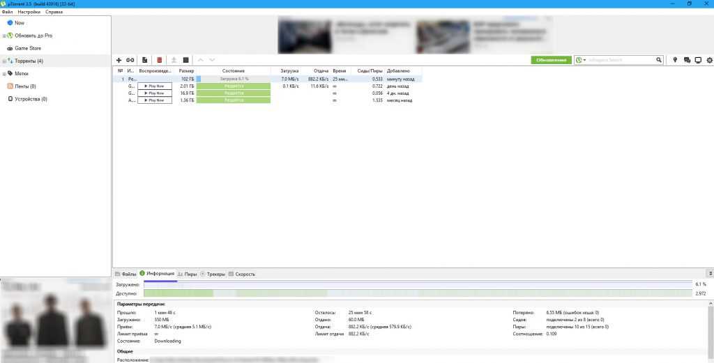 Помимо специализированных сервисов, перечисленных выше, входящую скорость интернета можно проверить с помощью μTorrent или любого другого торрент-клиента. Этот способ будет удобен, если вы уже знаете, как скачивать файлы с трекеров.