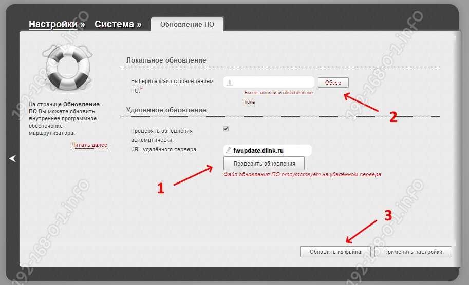 Эта страница позволяет обновить прошивку D-Link DIR-300 локально, то есть из файла, а так же через Интернет, если есть активное подключение. Поэтому кликните на кнопку Проверить обновления и посмотрите найдутся ли новые версии онлайн. Для локального обновления прошивки роутера Д-Линк, кликните по кнопке Обзор.
