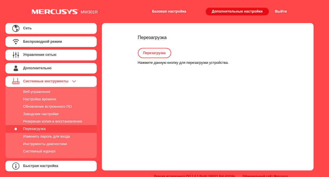 Настройка завершена, можно перезагрузить роутер. Заходим в Системные инструменты, Перезагрузка и нажимаем кнопку Перезагрузка. Роутер будет перезагружен и настройки вступят в силу.