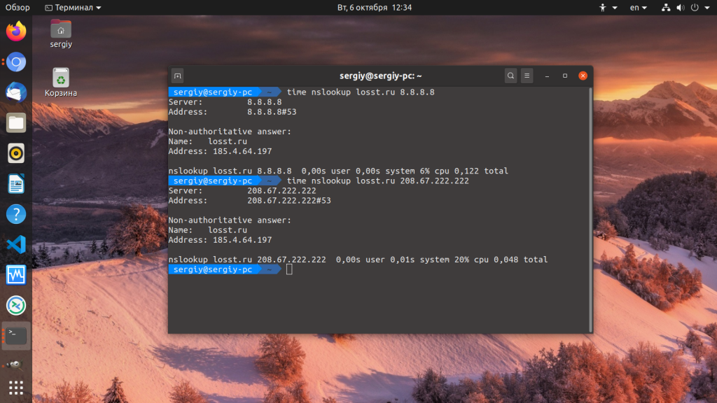 Первый параметр — адрес сайта, который будем измерять, второй — адрес DNS-сервера. Команда time замеряет время выполнения nslookup в миллисекундах. Как видите, первый DNS сервер от гугла медленнее по сравнению с вторым. А теперь перейдём непосредственно к списку «хорошие DNS-серверы».